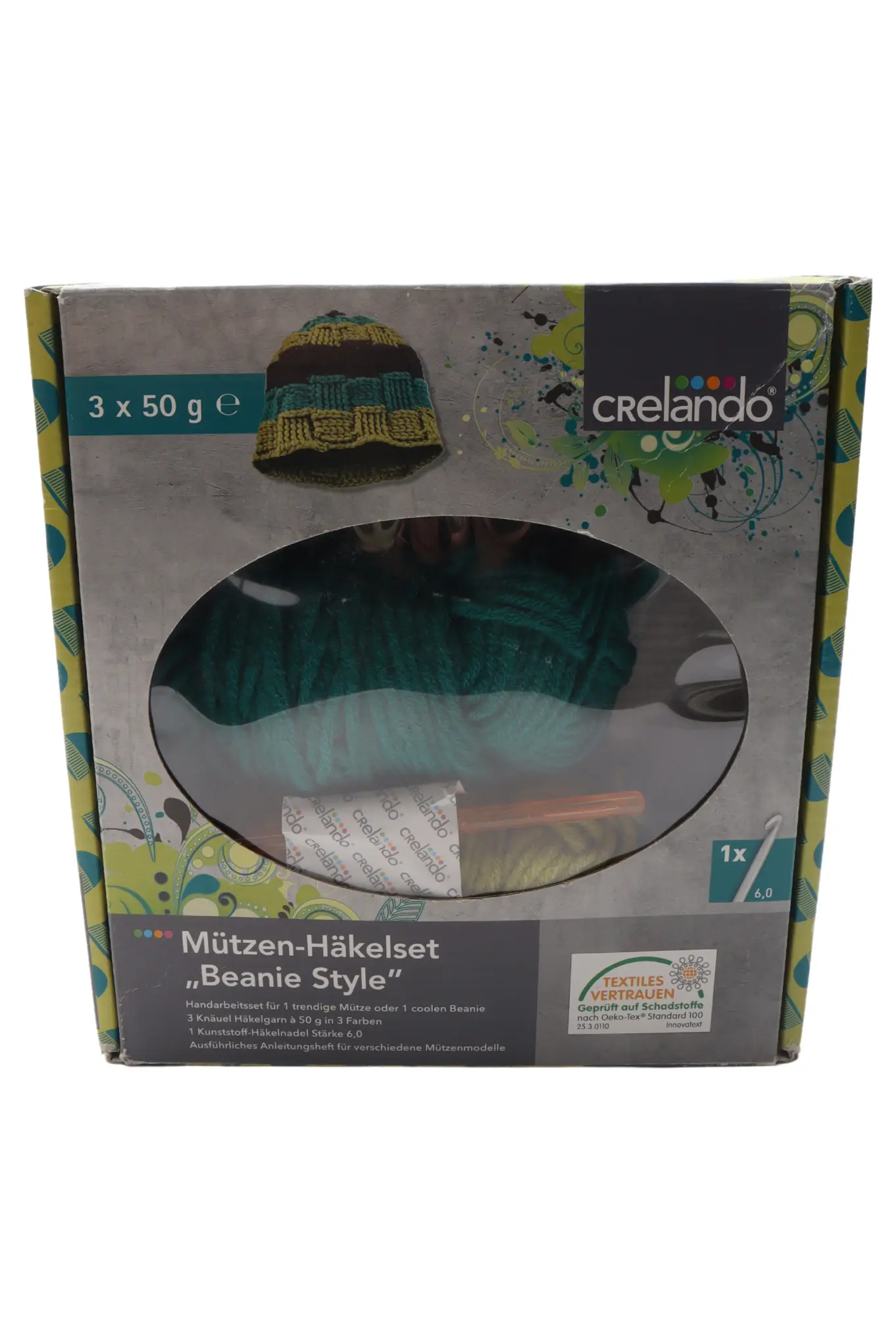 CRELANDO Mützen-Häkelset Beanie Style Mehrfarbig DIY Wolle