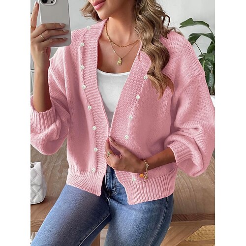 Per donna Felpa Cardigan Moda Quotidiano Casual Scollo a V Con perline Manica Lunga Top Regolari Maglia Quotidiano Weekend Nero Rosa Primavera