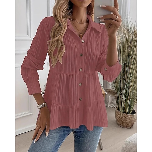 Per donna Camicia Blusa Semplice Casual Manica Lunga Colletto a Camicia Top Regolari Quotidiano Ferie Arricciato Bottoni Nero Rosso Blu marino Verde Beige Estate