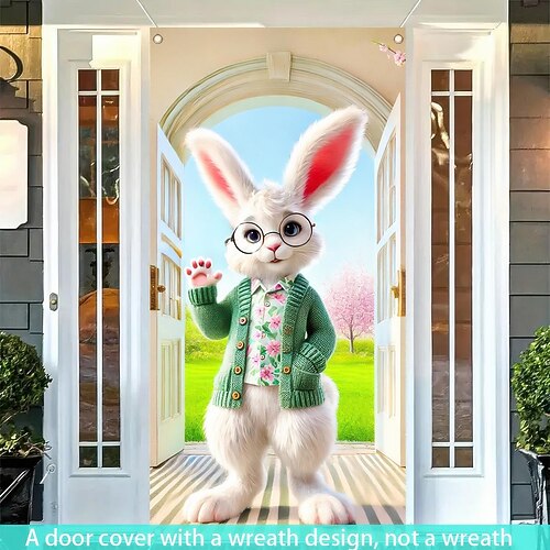 Copriporta di benvenuto pasquale, adorabile coniglietto che saluta in una cornice a forma di ghirlanda, affascinante decorazione primaverile per le vacanze pasquali, perfetta per porte e decorazioni