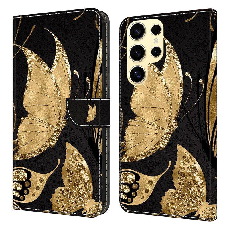 Samsung Galaxy S26 Ultra Plånboksfodral Magnetisk Lås Konstläder - Guldfjäril