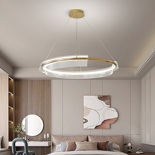Lampada a sospensione a led a 2 luci da 60 cm design cerchio in alluminio finiture verniciate dimmerabile moderna sala da pranzo camera da letto con paralume in acrilico luci regolabili 50w solo dimmerabile con telecomando
