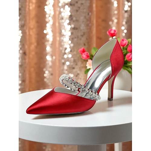 Scarpe con tacco a spillo da donna con punta affilata e cristalli satinati - eleganti décolleté a stiletto per abiti da sposa, da sera e da cocktail party