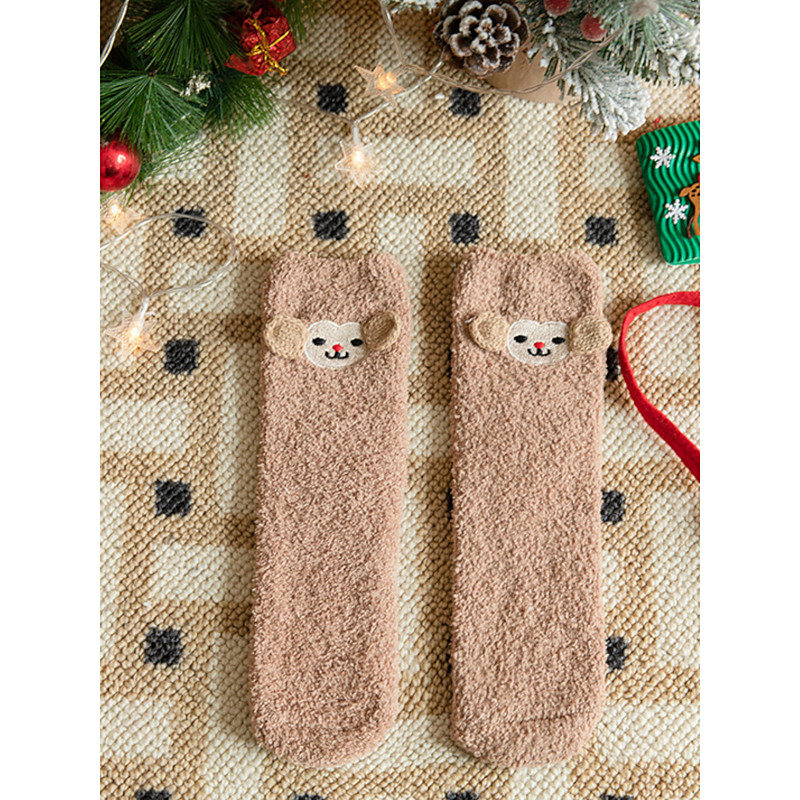 Cartoon Embroidered Animal Women Socks Autumn WinterThick Lamb Fleece Cozy Sleep Socks Soft Warm Home Floor Socks Non Slip Fuzzy Indoor Lounge Wear