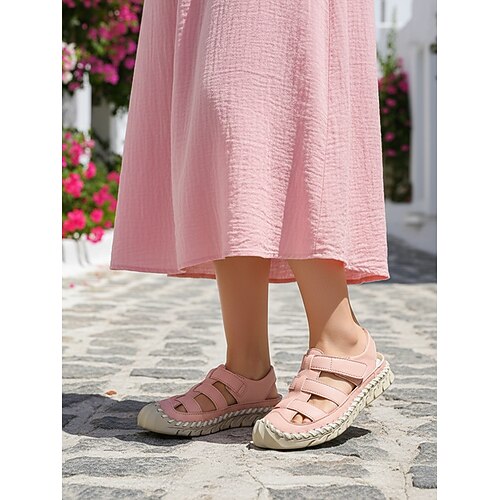sandali da pescatore chiusi arancioni da donna - sandali sportivi comodi cuciti a mano per camminare, viaggiare, giornate lavorative informali e uso quotidiano