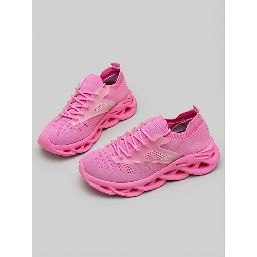 Scarpe da corsa rosa da donna in maglia: scarpe sportive leggere e ammortizzate con plateau, ideali per camminare, viaggiare e per l'uso quotidiano.