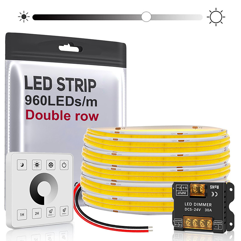24V Dual-row Ultra-bright COB LED Strip 8.2ft 16.4 ft Warm White Natural light CRI 95 960led /M 190W High-density Tape Lamp with Optional Controller and Power Supply for Us Commercial Industrial