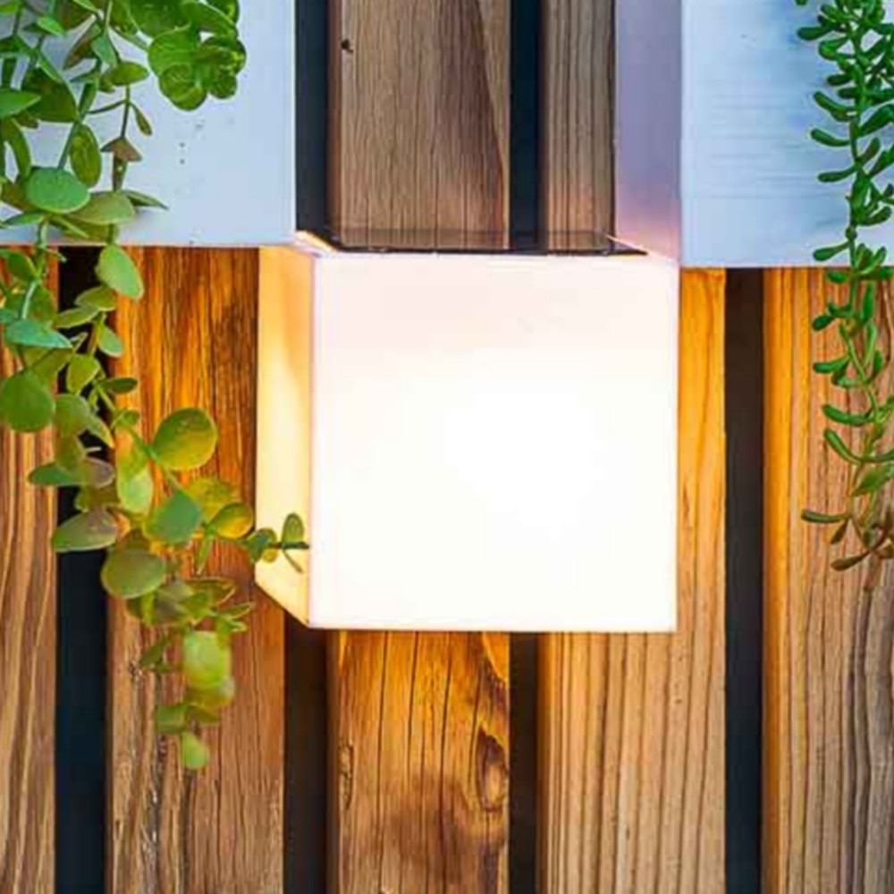 New Garden Wally - wandlamp op zonne-energie met afstandsbediening - 12 x 12 x 12 cm - 5W LED incl. - IP65 - wit - warm witte lichtkleur