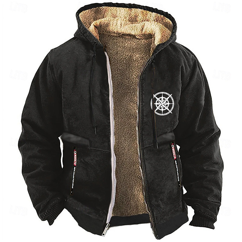Men's Animal Wolf Graphic Prints Winter Coat Fleece Jacket Coat Warm Comfortable Breathable Fashion Streetwear Sport Sports Outdoor Daily Wear Going out Zipper Pocket Print Fall Winter Hoodie