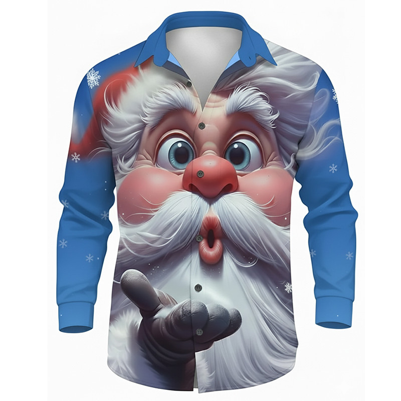 Christmas Men's Santa Claus 3D Cartoon Smile Face Shirt Button Up Shirt Long Sleeve Funny Outdoor Holiday Spring Fall Turndown 3D Print Collared Shirts Red Blue Brown Green Gray