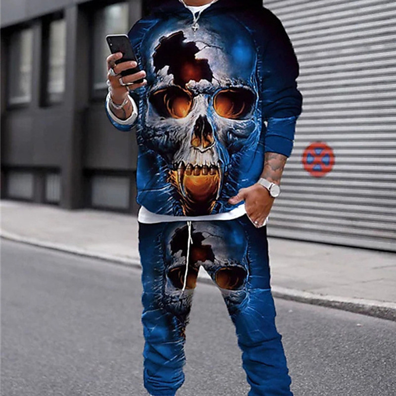 Men's Skull Optical Illusion 3D T Shirt Short Sleeve T shirt 3D Print Crew Neck Shirt Exaggerated Designer 3D Party Street Casual Red Blue Green Summer Spring All Seasons Clothing Apparel S M L XL
