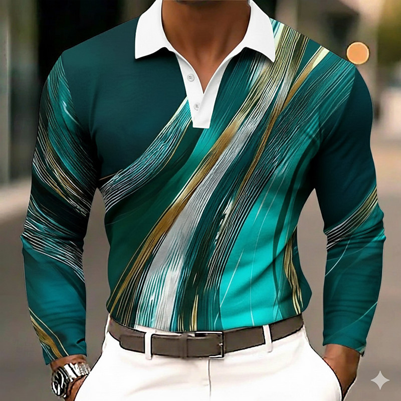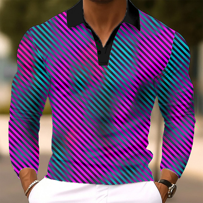 Men's Geometric Polo Long Sleeve Polo Shirts Lapel Business Casual Athleisure Daily Wear 3D Print Buttons Spring Fall Winter Violet Pink Yellow Red