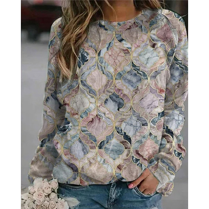 Women's Blouse Floral Graphic Vintage Tropical Stylish Long Sleeve Crew Neck Regular Tops Daily Holiday Going out Patchwork 3D Print Black Yellow Red Blue Purple Fall Winter