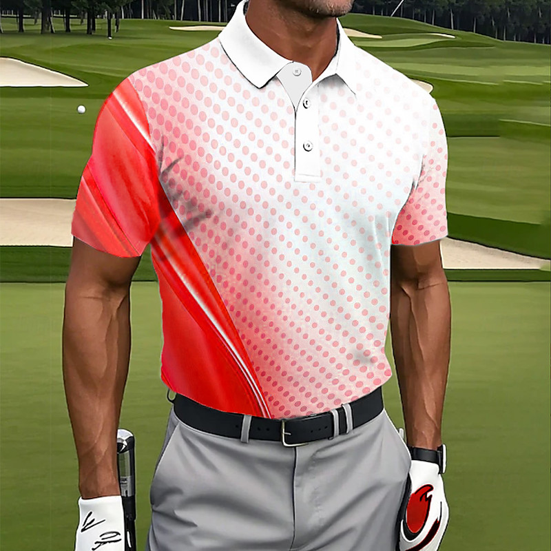 Men's Geometic Golf Sports Polo Shirts Short Sleeve Polo Shirts Lapel Casual Athleisure 3D Print Buttons Summer Blue Light Green Red