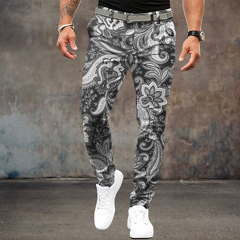 Men's Floral Dress Pants Mid Waist Vintage Casual Outdoor Home Dailywear Zipper Pocket Summer Spring Fall 3D Print Black Yellow Pink