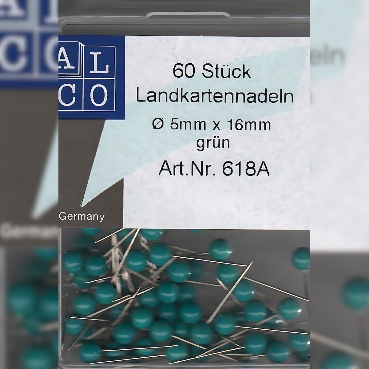 Alco Landkartennadel 16mm Ø5mm dunkelgrün 60 Stück