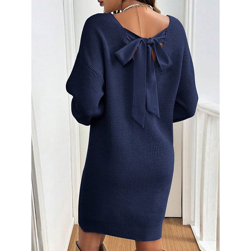 Women's Sweater Sweater Dress Casual Soft Pure Color Ribbed Crew Neck Knitted Long Sleeve Regular Tops Knit Outdoor Daily Weekend Black Royal Blue Fall Winter