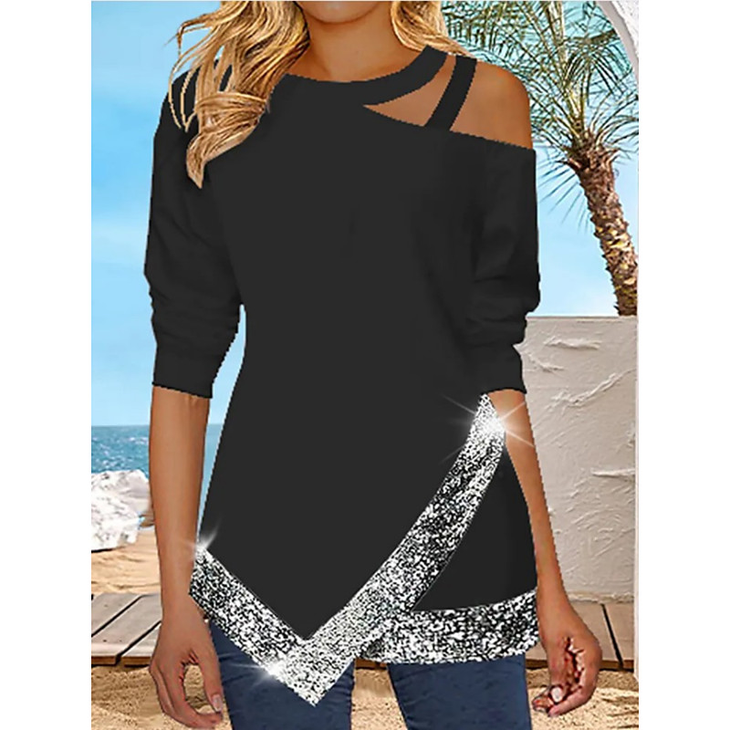 Women's Blouse Solid Color Stylish Casual Long Sleeve Crew Neck Regular Tops Daily Sequins Patchwork Black White Wine Purple Light Grey Spring Fall