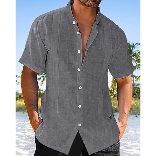 Per uomo Camicia Camicia di lino Camicia popover Camicia Estiva Abbigliamento da spiaggia Camicia con colletto alla coreana Semplice Vacanza Casuale Nero Bianco Rosa Verde Manica Corta Henley Estate