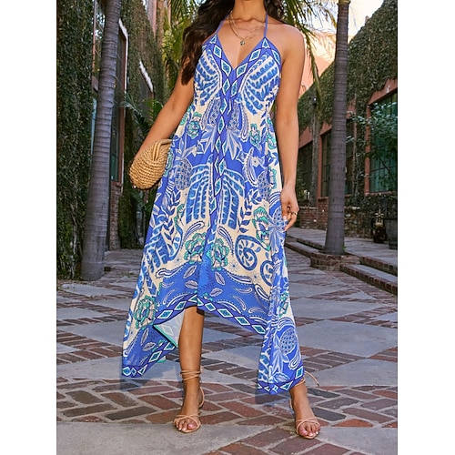 Per donna Abito maxi Abito a trapezio Abito Sottoveste Vacanza Casual All'aperto Uscire Vestibilità comoda Floreale Senza Maniche Spalline sottili Blu Rosso Fucsia Verde Estate Primavera