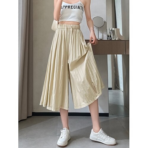 Pantaloni Chinos Larghi in Lino Sintetico Simile al Cotone per Donna Moda da Vacanza Stretwear alla Caviglia Vita Alta Semplice Fascia Elastico Comoda Morbida Stretch Esterno Nero Rosa Albicocca