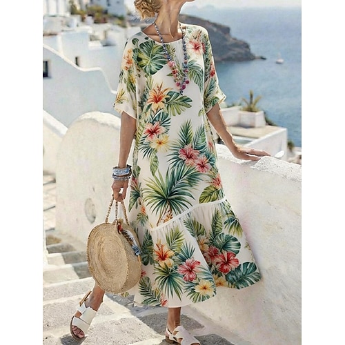 Per donna Abito lungo maxi Abito a Tubino Vestito Casual Moda Moderno Quotidiano Vacanza Uscire Vestibilità comoda Floreale Mezza Manica Girocollo Blu Rosso Verde scuro Viola Estate Primavera Autunno