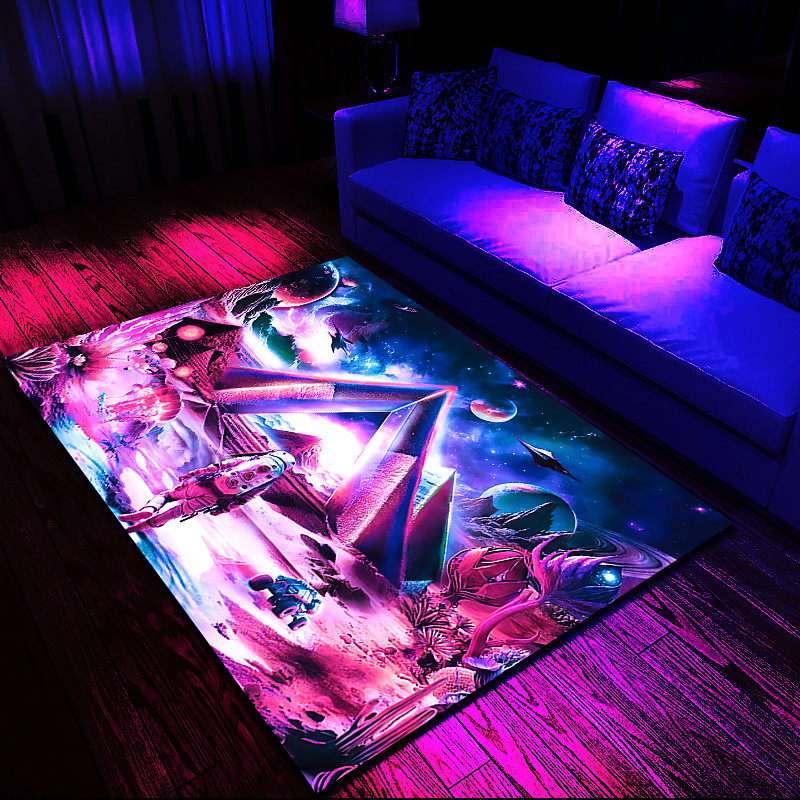 Tree of Life Blacklight Rug Carpet Floor Mat UV Reactive Glow in the Dark Rug Large Non-Slip Rug Mat Carpet for Room Decor