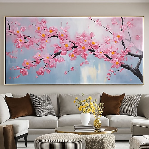 handgefertigte 3D-Ölgemälde-Blumenkomposition mit lebendigen Farben und reichen Texturen, erstellt mit Impasto-Technik, die zarte Blütenblätter und lebendige Farbtöne perfekt für die Inneneinrichtung