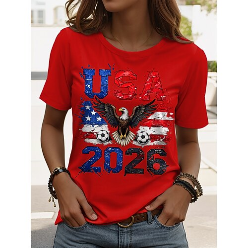 Maglietta da Donna World Soccer Match 2026 Stampa Grafica Lettera Elegante Classica Casual Maniche Corte Collo Tondo Regular Top Giornalieri Blu Nero Bianco Rosso Verde Estate Primavera
