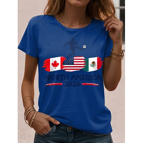 Maglietta da Donna World Soccer Match 2026 Stampa Grafica Elegante Classica Casual Maniche Corte Collo Tondo Regular Top Giornalieri Blu Bianco Rosso Verde Estate Primavera