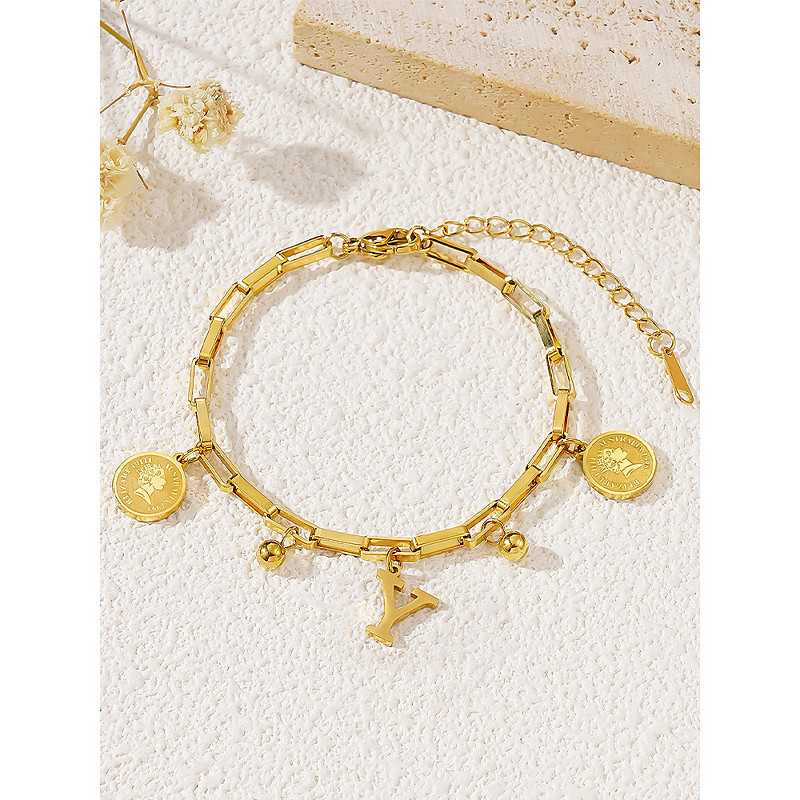Women's Gold-Plated Alphabet Letter Bracelet with Coin and Ball Charms, Adjustable Chain, Stylish Christmas Gift for Her, Personalised Jewelry Accessory