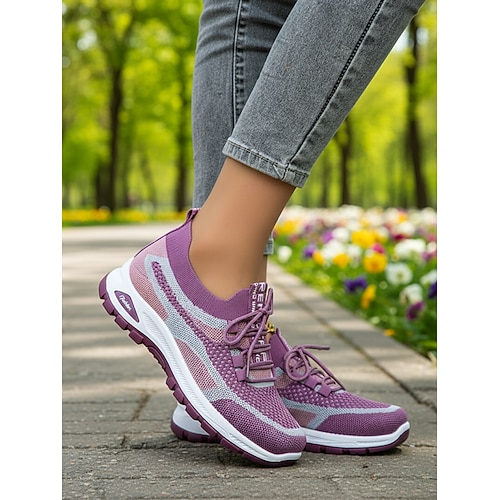 scarpe da ginnastica da donna in maglia viola – scarpe da passeggio traspiranti e leggere con un design elegante per attività sportive e gite casual