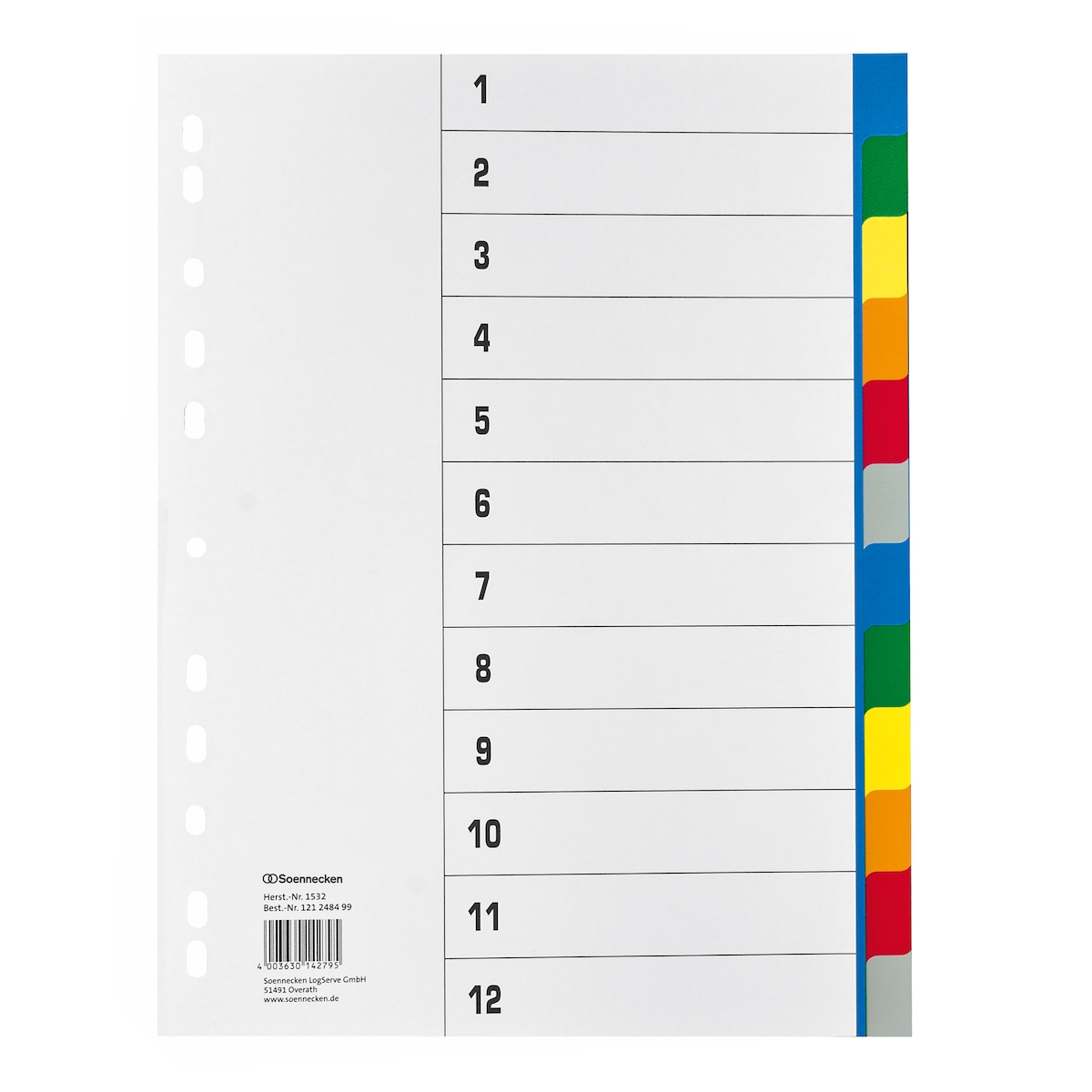 Soennecken Register 1532 DIN A4 blanko volle Höhe 12-teilig PP farbig