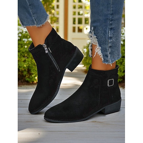 stivaletti da donna in finta pelle scamosciata con cerniera laterale e fibbia: comodi stivaletti casual per le uscite autunnali, le passeggiate in giardino e le gite del fine settimana