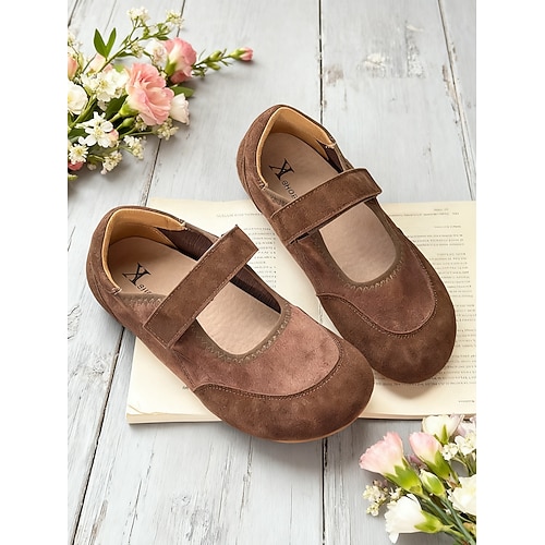 comode ballerine Mary Jane da donna in finta pelle scamosciata, vestibilità ampia, cinturino regolabile e design leggero, perfette per l'abbigliamento casual, l'uso quotidiano e il lavoro