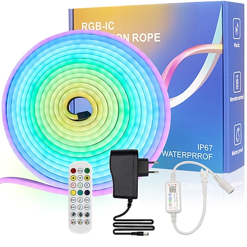 1 Set 3/5/10 m 24 V RGBIC LED-Neonlichtkette, intelligent, wasserdicht, für den Außenbereich, Fernbedienung App-Steuerung, Musiksynchronisation, mehrfarbige Raumbeleuchtung