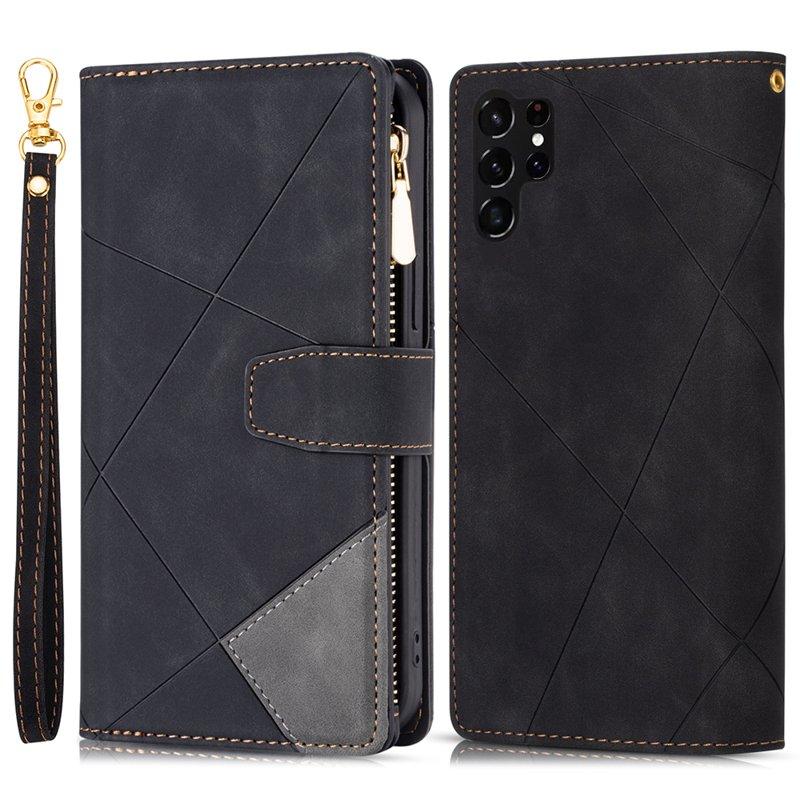 Samsung Galaxy S26 Ultra Fodral Splicing Läder Ställ - Svart