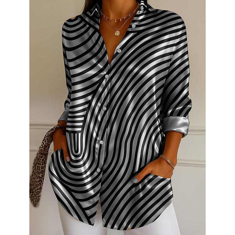 Women's Shirt Dressy Tops Formal Work Shirt Graphic Geometric Striped Elegant Stylish Modern Long Sleeve Collar Party Evening Wear Daily Blue Purple Green Khaki Gray Summer Fall Winter Spring, Fall