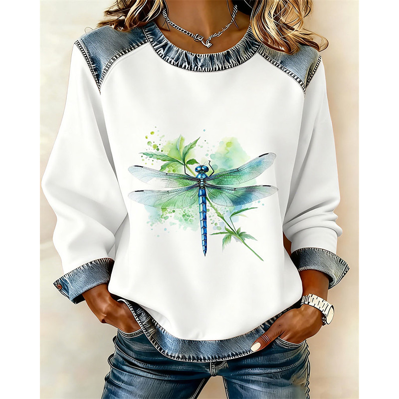 Women's Pullover Sweatshirt Floral Graphic Animal Elegant Warm Classic Long Sleeve Round Neck Regular Tops Home Work Street Patchwork Print Blue Light Pink White Pink Green Fall Winter