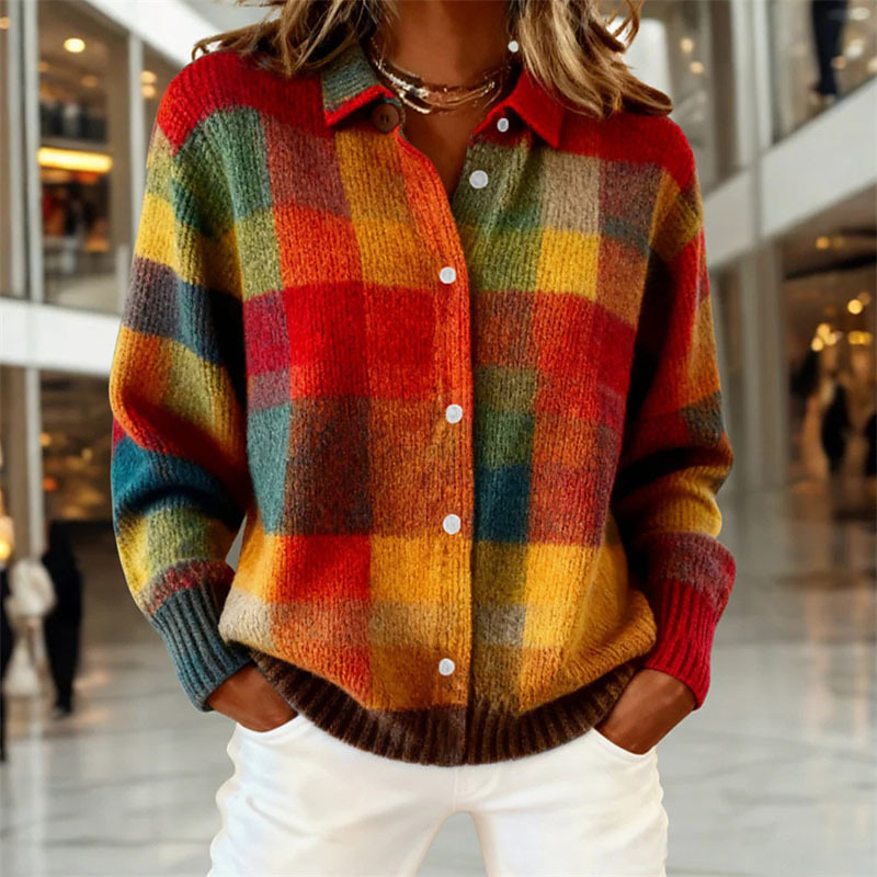 Women's Blouses Elegant Fashion Streetwear Solid Color Graphic Plaid Shirt Collar Patchwork Buttons Knitted Long Sleeve Regular Tops Knit Home Outdoor Work Yellow Light Green Fall Winter