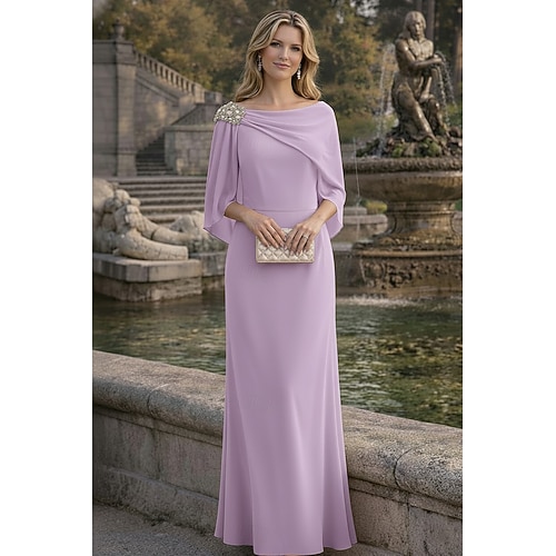 Linea ad A Abito Lunghezza al pavimento Abito da invitata a nozze Abito Formale Abito da sera Abito da cerimonia per signora Manica 3/4 Scollo a Barca Elegante Semplice Minimalista Formale Chiffon