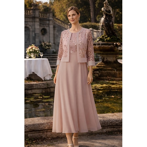 Due Pezzi Linea ad A Set di Abiti Lunghezza alla caviglia Abito da invitata a nozze Largo Abito da cerimonia per signora Senza Maniche Manica 3/4 Scollo a Barca Elegante Semplice Abbellito Formale