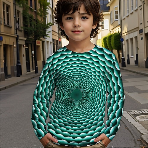 Da ragazzo 3D Pop art Fantasia geometrica maglietta T-shirt Manica lunga Primavera Autunno Di tendenza Essenziale Bambino 4-12 anni Girocollo Esterno Informale Giornaliero Standard