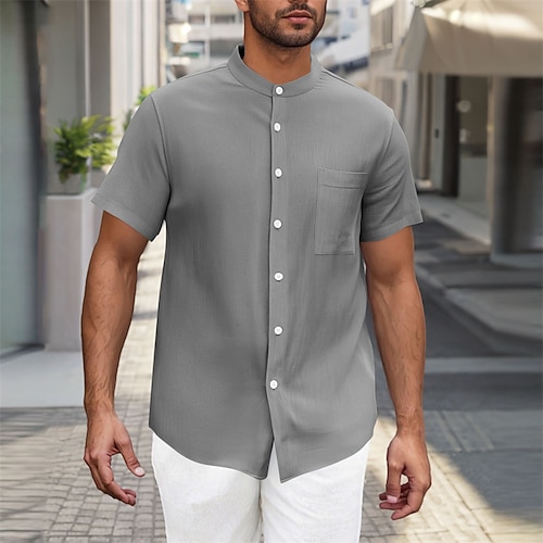 Per uomo Camicia Camicia Estiva Camicia casual Camicia da Spiaggia Camicia con Bottoni Nero Bianco Azzurro cielo Grigio Manica Corta Semplice Colletto alla coreana Vacanza Camicia hawaiana Tasca