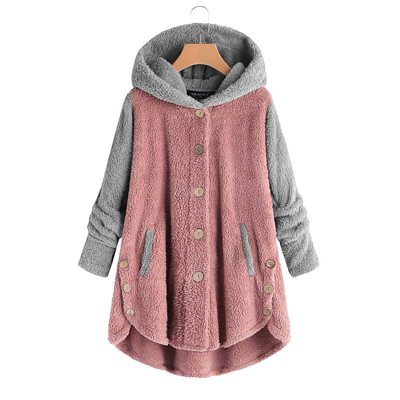 Women's Color Block Warm Teddy Fuzzy Long Sleeve Hoodie Long Tops Street Casual Buttons Pocket Black Pink Wine Blue Green Fall Winter