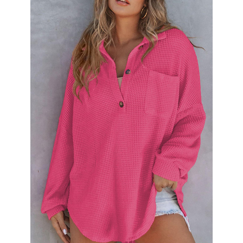 Women's Shirt Blouse Solid Color Basic Casual Long Sleeve Shirt Collar Long Tops Daily Buttons Pocket Black Fuchsia Green Beige Fall Winter