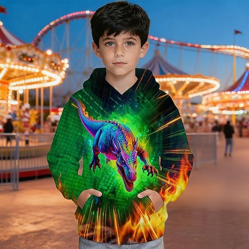 Jungen 3D Grafik Dinosaurier Kapuzensweatshirt Langarm Frühling Herbst Mode Streetwear Kinder 4-12 Jahre Mit Kapuze Outdoor Lässig Täglich Normale Passform