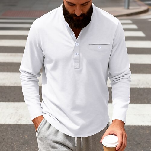 Per uomo Maglietta Maglia Henley Camicia a Maniche Lunghe Manica Lunga Henley Primavera Autunno Semplice Moda Streetwear Tempo libero Bottoni Vacanza Sport Outdoor Casuale Grigio scuro Aalbicocca