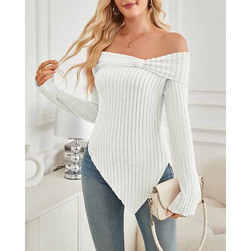 Per donna Blusa Semplice Elegante Moderno Manica Lunga Senza Spalle Top Regolari Ferie Uscire Fiocco Senza schiena Nero Bianco Rosa Albicocca Azzurro Autunno