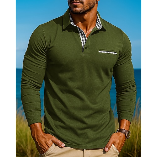Per uomo Polo da golf Manica Lunga Collo ripiegato Top Esterno Traspirante Poliestere Nero Verde militare Rosso Tennis Golf Corsa